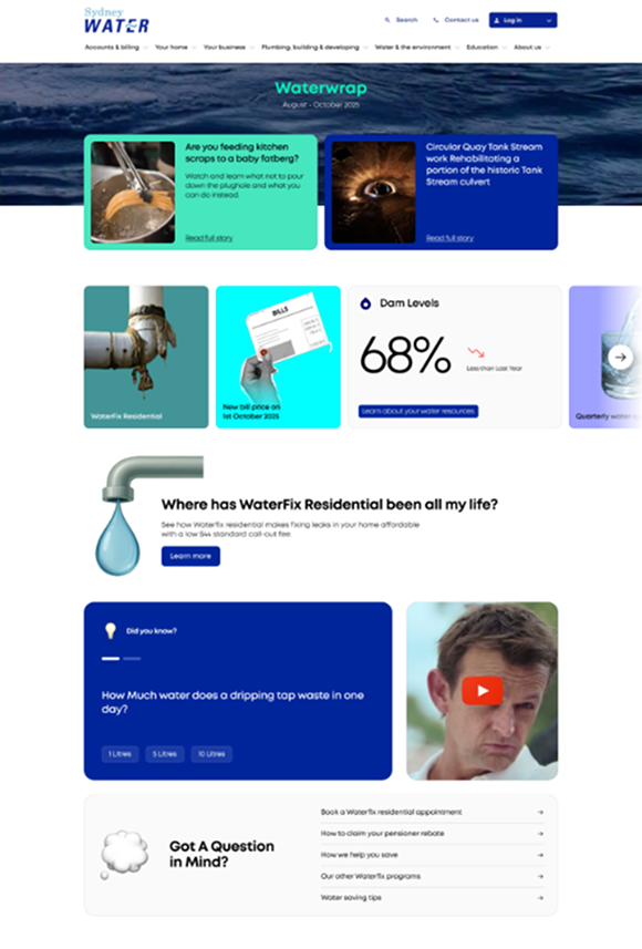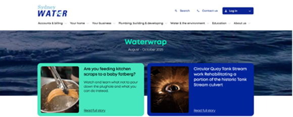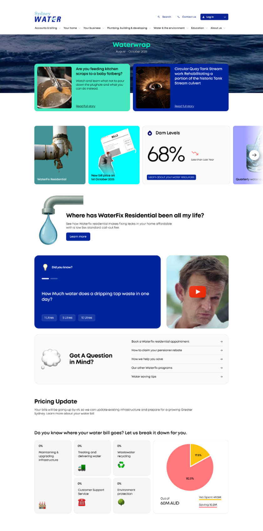 - Align with Sydney Water’s branding guidelines, but create a more dynamic and engaging experience than existing pages (e.g., WaterNSW)